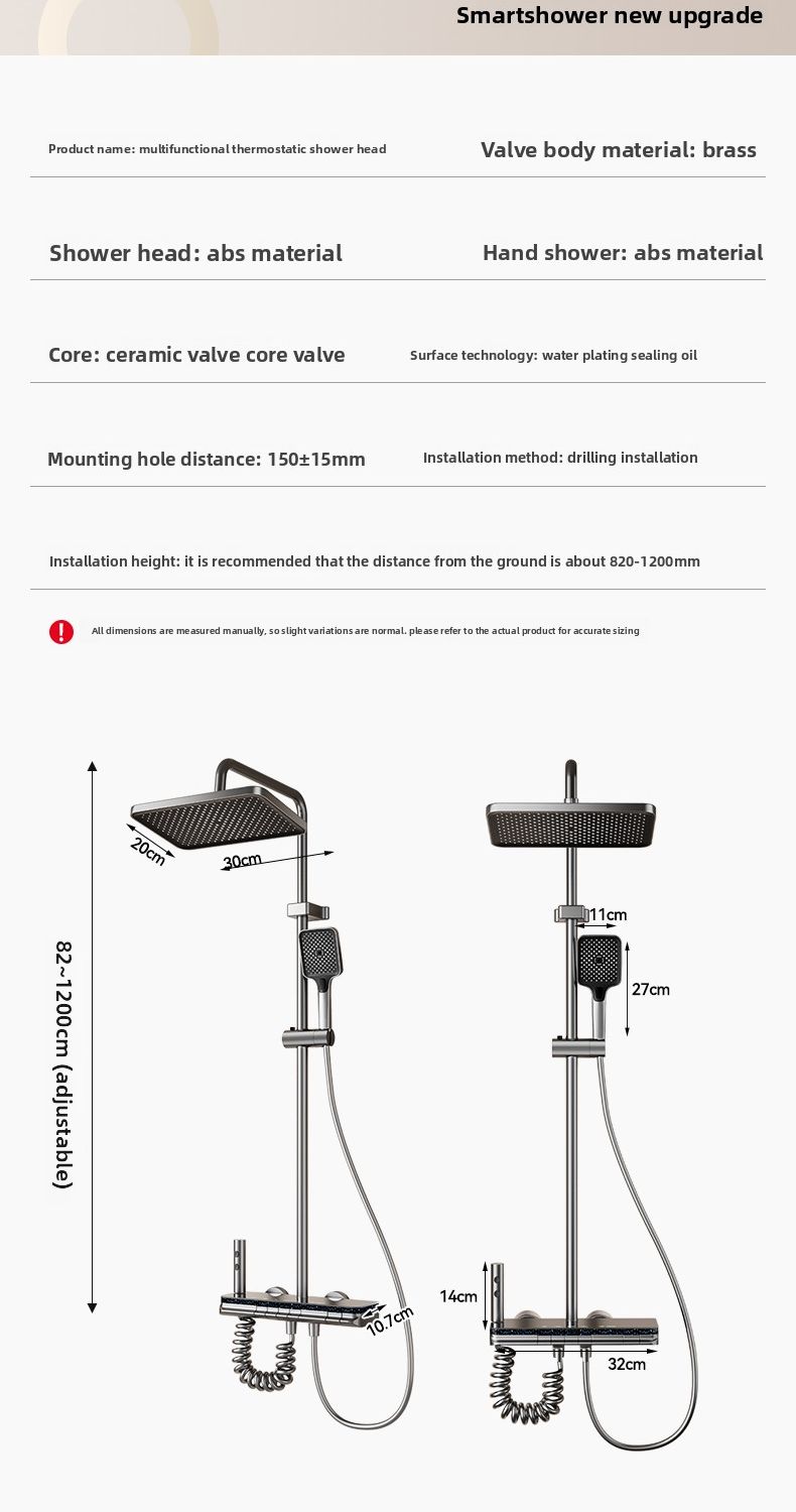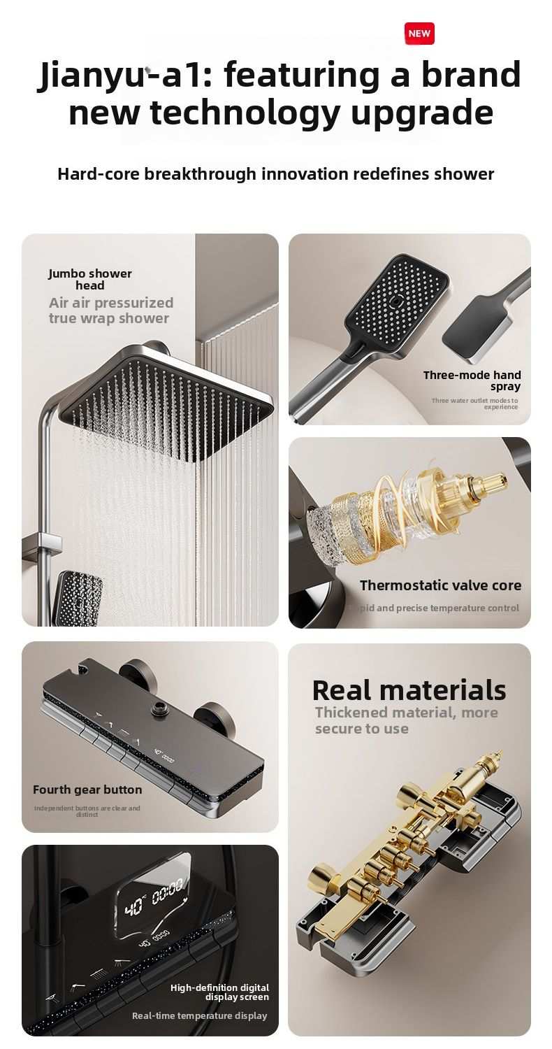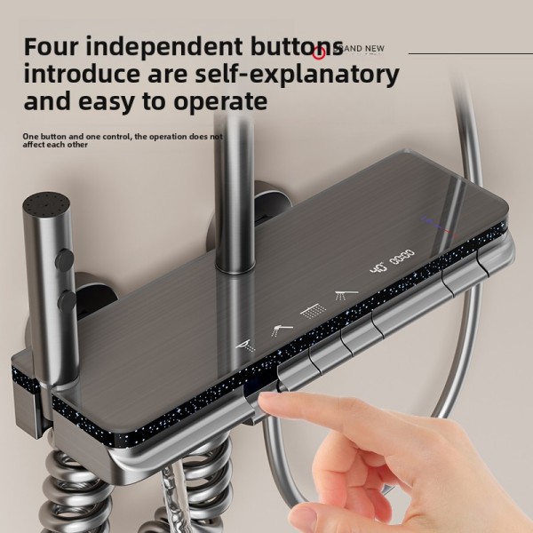 This all-in-one shower system simplifies installation and daily operation, saving time and effort for families and contractors. Its sturdy space aluminum construction reduces replacement frequency and lowers long-term maintenance costs. The thermostatic function ensures safe use for the elderly, children and all family members.