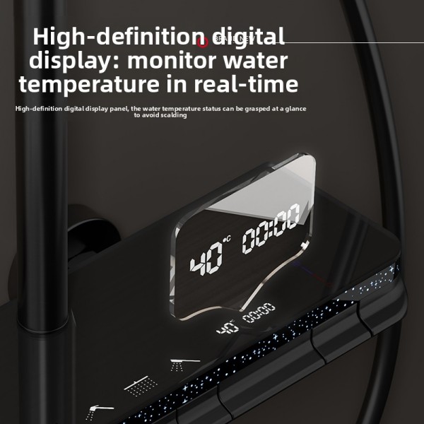 This 4-Function Digital Shower System integrates practicality and modern aesthetics, designed to upgrade both residential and commercial bathroom spaces. Constructed from high-quality space aluminum material, the shower system delivers exceptional durability, lightweight handling and long-lasting corrosion resistance, ensuring reliable daily use for years.